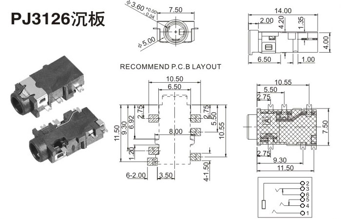 耳機插座PJ3126沉板